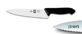 סכין שף רחב משונן 25 ס"מ ידית פלסטיק שחורה ICEL POLY