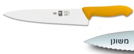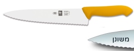 סכין שף רחב משונן 25 ס"מ ידית פלסטיק צהובה ICEL POLY