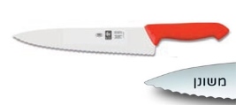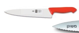 סכין שף רחב משונן 25 ס"מ ידית פלסטיק אדומה ICEL POLY
