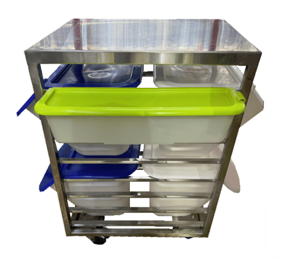 עגלה נירוסטה נמוכה 8 מסלולים+מדף עליון 61/46 ס"מ גובה 91 ס"מ ל4 מיכלים+מיכל זרעים צדי "נטו"