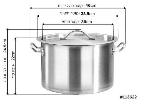 סיר נירוסטה 36 בינוני גובה 22 ס''מ 24 ליטר כולל מכסה מתאים לאינדוקציה B-M best choice best choice