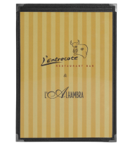תפריט בודד A5 שקוף שחור 21/15 ס"מ פינות כסף
