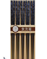 סט 5 מקלות צ'ופסטיק ראש מסולסל 23 ס"מ שחור רב פעמי JEWEL JAPAN